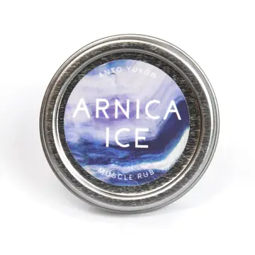 This muscle rub is infused with naturally anti-inflammatory wild arnica flowers. Find relief without the use of petroleum products or artificial ingredients. This balm contains menthol for a long lasting cooling sensation. Please note the label design is changing from what is shown in the picture. Please refer to 4th photo to see the new look. Wild foraged and handmade in small batches in our Yukon studio. 1 oz tin Ingredients: * Melaleuca Theobroma cacao (Cocoa) Seed Butter * beeswax * Mentha Piperita (Peppermint) Oil * Wild Arnica montana infused in Prunus dulcis (Sweet Almond) Oil * Menthol * Cajuputi (Cajeput) Oil * Cinnamomum Camphora (Camphor) Oil * Euginia Caryophyllata (Clove) Bud Oil * Tocopherol (Vitamin e)