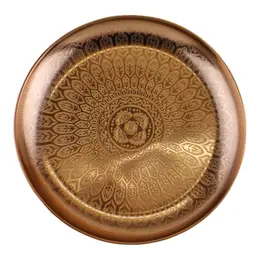 A beautifully etched copper metal tray for decorative use in your home. Made of iron and designed for ornamental use only, not foodsafe. Measurements: 32 x 3 x 32cm SKU: OR1517