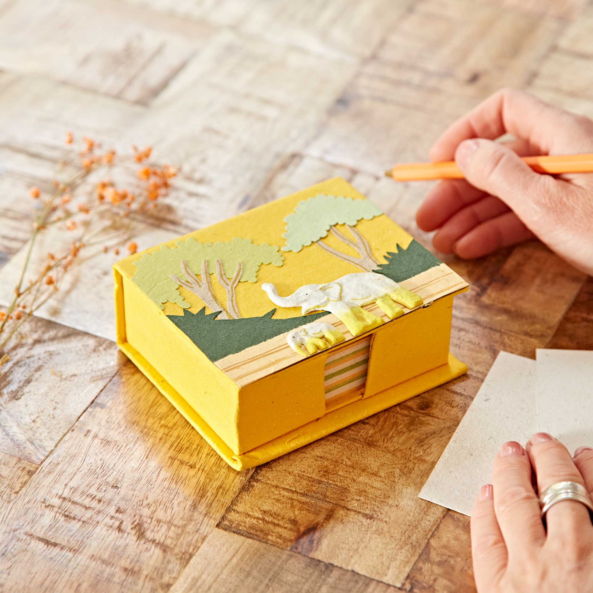 Introducing Paper High’s Elephant Dung Paper Note Holder, a practical yet eye‑catching stationery essential that combines sustainability, craftsmanship, and everyday usefulness. Made from 75% elephant dung and 25% recycled paper, this note holder transforms natural fibre waste into high‑quality, textured paper that is clean, durable, and completely odour‑free, offering an eco‑friendly alternative to conventional desk stationery. Available in five vibrant colourways, these note holders bring colour and interest to desks, workspaces, and stationery displays while supporting conscious consumer choices. Perfect for jotting reminders, messages, lists, or ideas, they are ideal for home offices, workplaces, students, gift buyers, and especially useful during exam season. With a strong ethical story and highly functional design, this item is an easy add‑on purchase and a reliable year‑round seller. • Made from elephant dung and paper: Sustainable use of natural fibre waste • Handcrafted & eco‑friendly: Each cube ha