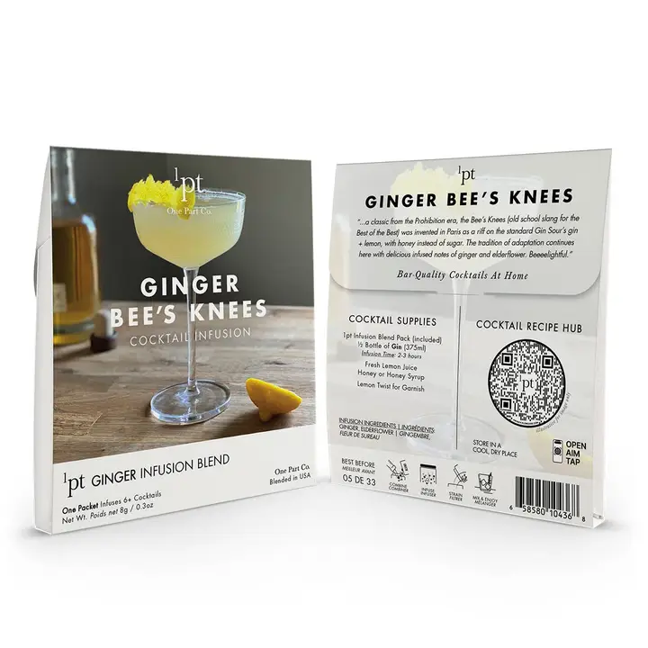 About this ginger bee’s knees gin cocktail: a classic from the prohibition era, the bee’s knees (old school slang for the best of the best) was invented in Paris as a riff on the standard gin sour’s gin + lemon, with honey instead of sugar, here with delicious infused notes of ginger and elderflower.