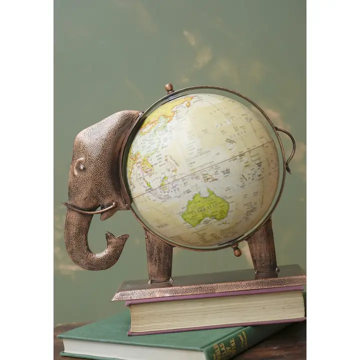 Handmade by pasting individual leaves of paper around a ball to create the globe, these elephant globes are unusual, eclectic and a truly novelty gift. 27 x 11 x 27cm Handmade Iron Produced on a Fair Trade basis by a small family business in India. Namaste has been helping the business for a few years now by making regular orders and developing new designs each year with them. Workers are well looked after with good facilities and good benefits.