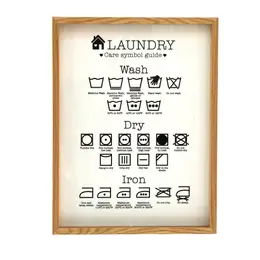 The Laundry Care Symbol Guide in Frame is a practical and informative decorative item that adds both functionality and style to any laundry room. This guide is designed to be a helpful reference for anyone who wants to take care of their clothes while doing laundry. The design of the guide features a clear and easy-to-read chart of laundry care symbols, including washing, drying and ironing symbols. The chart is printed in a clear and legible font, making it easy to read and understand while deciding what wash load to put on. Measurements: D2.5 x H42 x W32cm