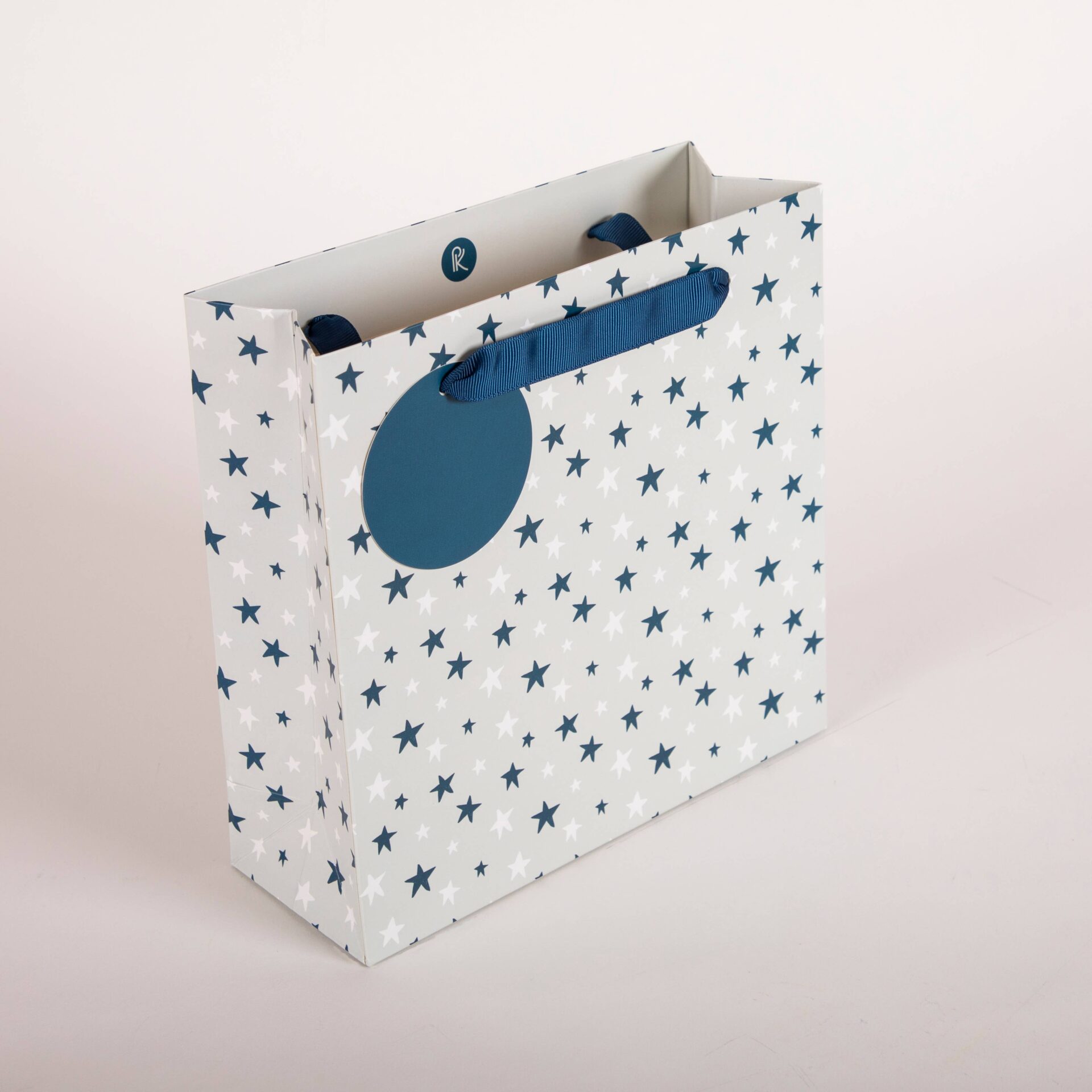 British designed gift bag that is recyclable. The perfect gift packaging for Mother’s Day. A medium square gift bag with dimensions of 22cm x 8cm x 22cm. Produced using responsibly sourced 230GSM linen paper with ribbon handles.