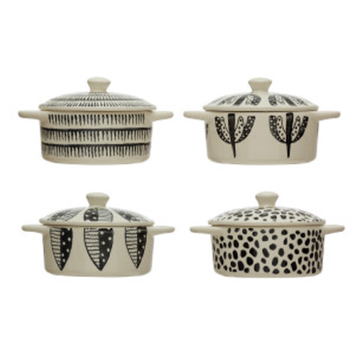 MINI STONEWARE BAKER WITH LID BLK/BEIGE