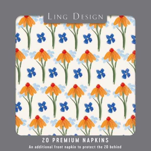 Premium decorative disposable napkins. Plastic packaging free, 20 napkins contained with an additional 1 napkin (21 in total) provided for hygiene purposes. 3 ply responsibly sourced certified tissue paper 330mm x 330mm.
