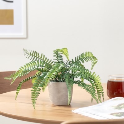 Liven up your space with a realistic looking faux potted fern. The cement pot is designed to fit well in your favorite planter, but will also make contemporary statement on it’s own. Perfect for your windowsill in the kitchen, or to make a shelf or desk feel more cheerful.