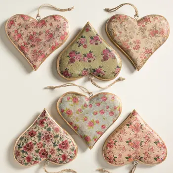 Small vintage wooden hanging heart decoration made from sustainable mango wood. 9 x 9cm Mango Wood