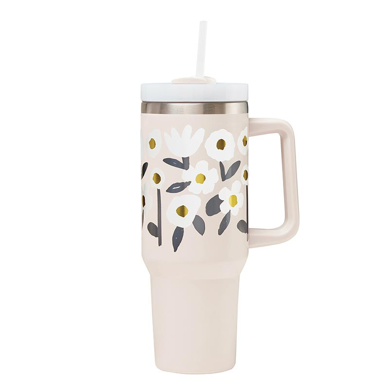 Stainless Steel Travel Tumbler White Flowers quantity