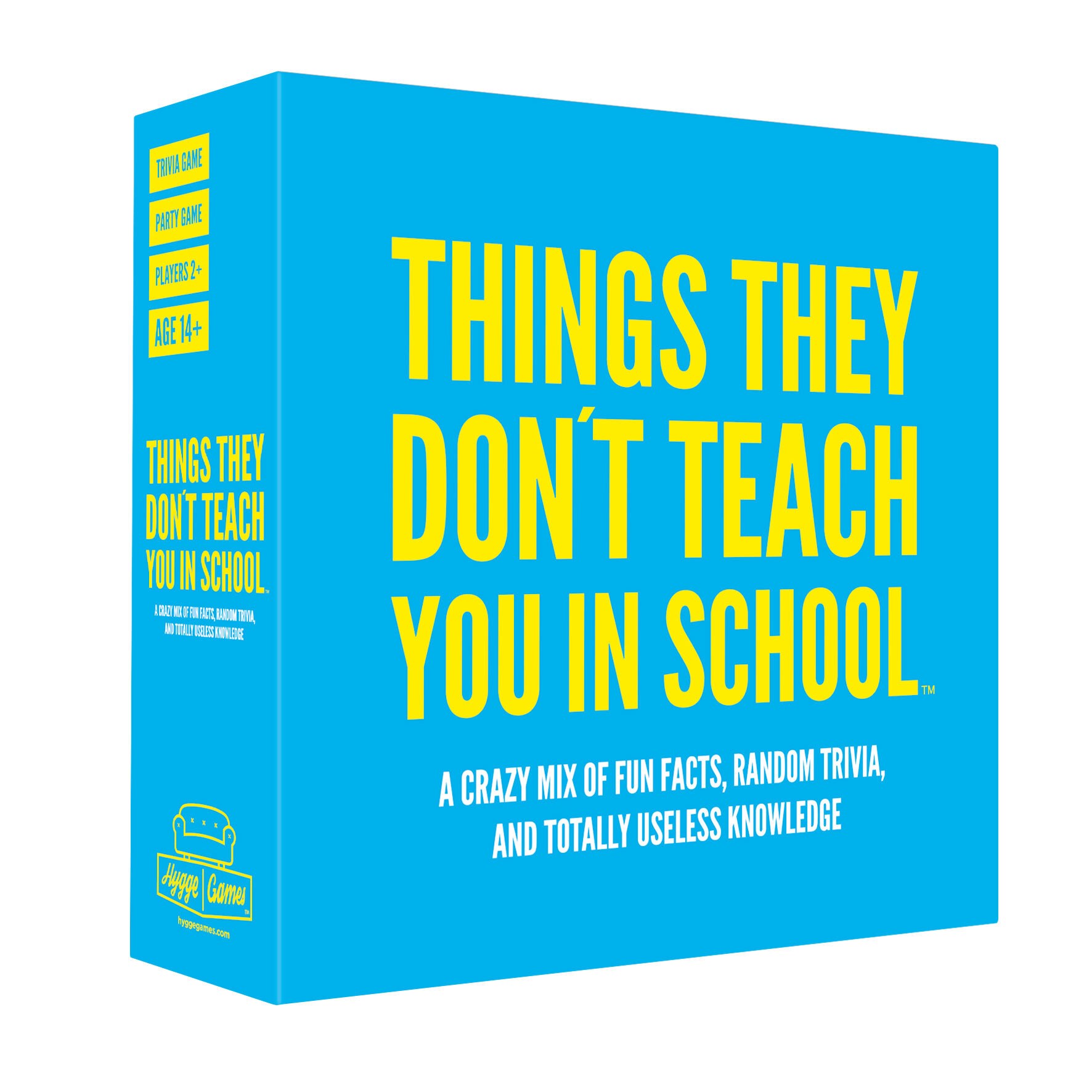 Why doesn’t the Mona Lisa have eyebrows? In what year was shampoo invented? What is the most common day of the week to have sex? Things they don’t teach you in school is definitely not your traditional trivia game with boring questions about who wrote the Sherlock Holmes stories or where the 1996 Summer Olympics were held. Instead, this is a hilarious trivia game with more than 400 unexpected questions and answers you’ll never see coming! Loads of laughs and interesting discussions guaranteed!