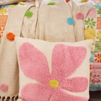 Refresh home furnishings with this charming hand tufted, tantalisingly tactile, bold flower cushion cover design on a strong recycled cotton weave. The contrasting textures work beautifully together, and combine to create an exquisite dressing option for sofas, beds and chairs. Additionally, the resilient plain reverse, generous size and discreet end zip make it a convenient floor cushion. Why not mix and match with our other bold flower designs in this collection and claim your style? Hand Crafted In India 55 x 55cm 100% Recycled Cotton