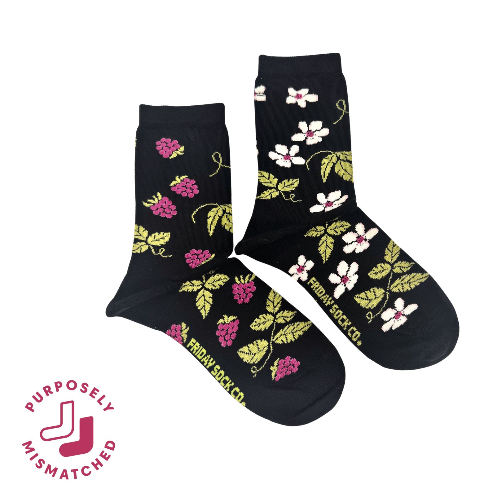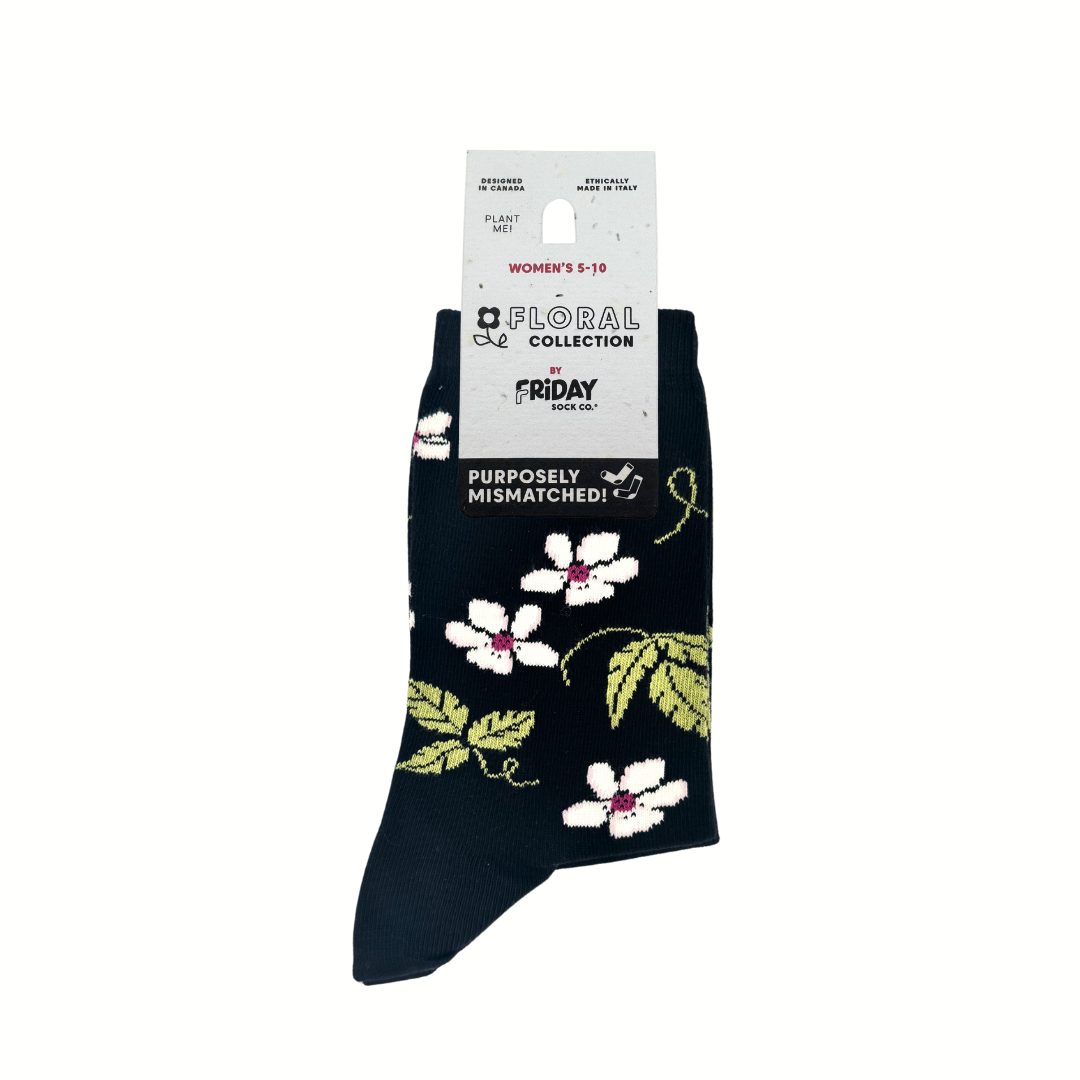Brighten her Easter basket with mismatched floral socks! These colorful wildflower patterns are the perfect Spring gift. These limited edition mismatched floral socks showcase raspberry blooms and fruit on a bold black base for a modern botanical look. Designed in Canada and ethically made in Italy, this spring release offers Faire retailers an exclusive, giftable women’s sock.